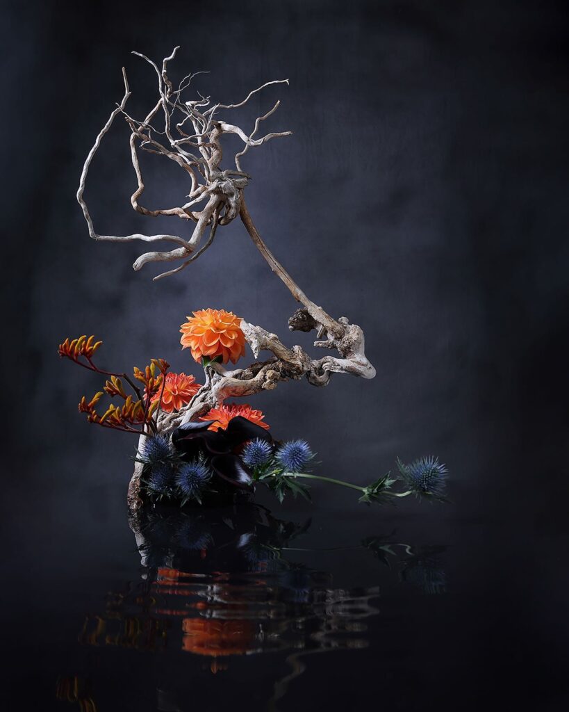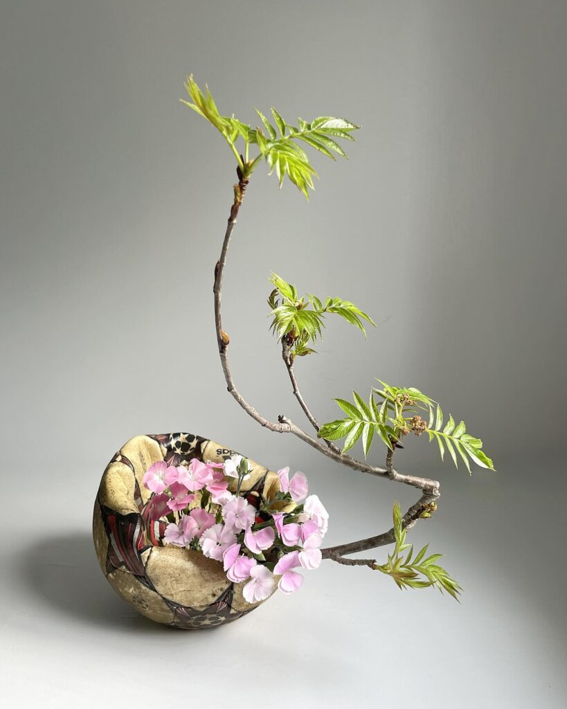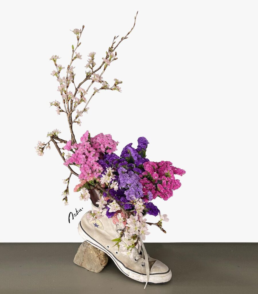 特に創作花を得意とし、日常にある様々なモノと花を組み合わせた独自の作品は、見る人に新しい視点を提示する。SNSを通じて国内外から注目を集めており、花が持つ視覚的な力とそこに込められた物語性を重ねることで、伝統文化の新たな魅力を伝えることを目指している。