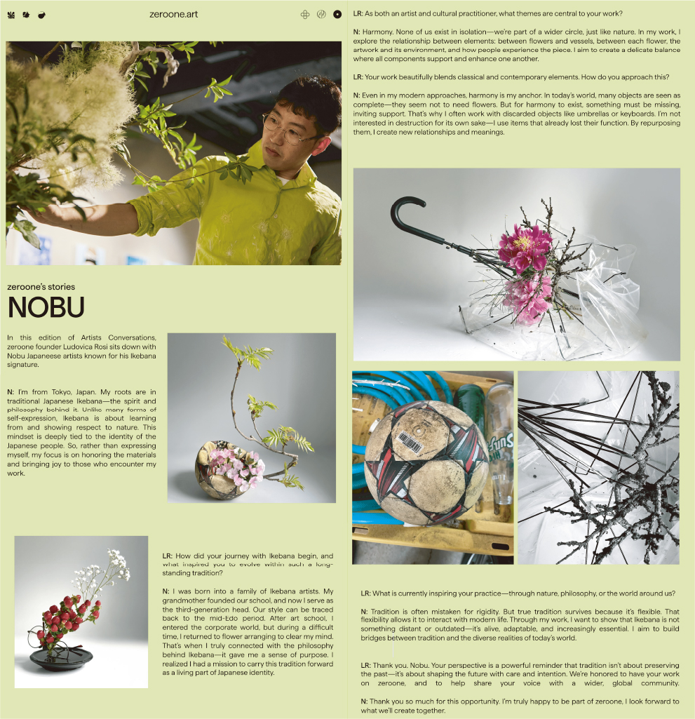 その公式ブログにおいて、いけばな作品を取り上げたインタビュー記事が公開された。記事では、創作の背景や思想、伝統文化を拡張する活動のあり方が多角的に紹介されている。
